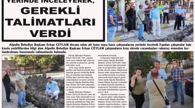 Alpullu Belediye Başkanı Erhan CEYLAN, Yeni yapılan içme suyu hattıyla ilgili çalışmaları yerinde inceleyerek, gerekli talimatları verdi.